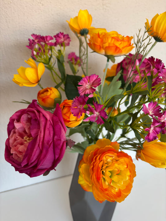 Kunstbloemen Boeket ‘Sensation Of Happiness’ - inclusief vaas