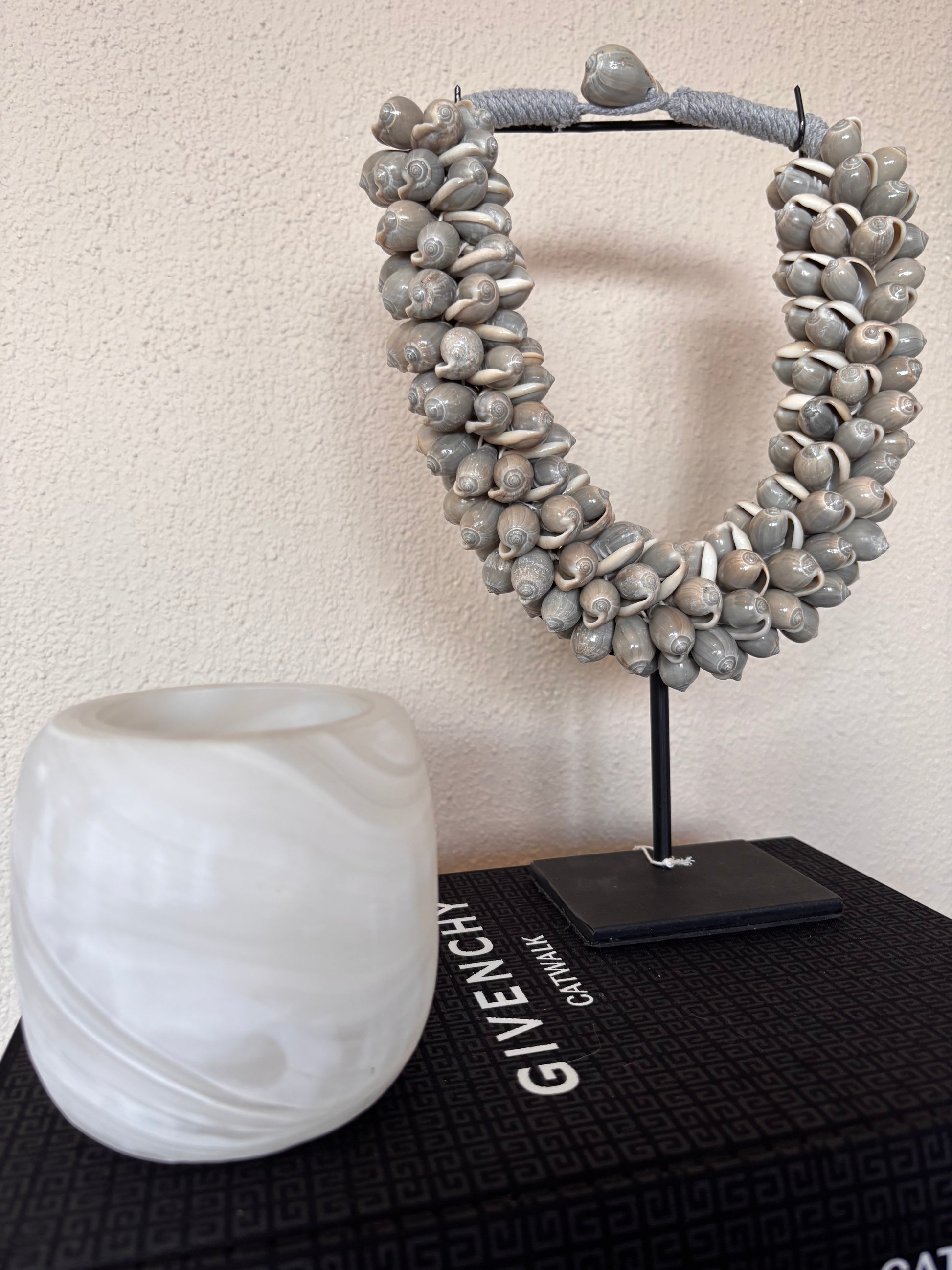 De J66 Small Shell Necklace van Pole to Pole is een nauwkeurig handgemaakt decoratiestuk dat Indonesisch vakmanschap en natuurlijke schoonheid samenbrengt. Deze schelpenketting, elegant gebruikt op een metalen standaard, is een unieke toevoeging aan jouw interieur. Perfect om elke ruimte een warme en authentieke uitstraling te geven.